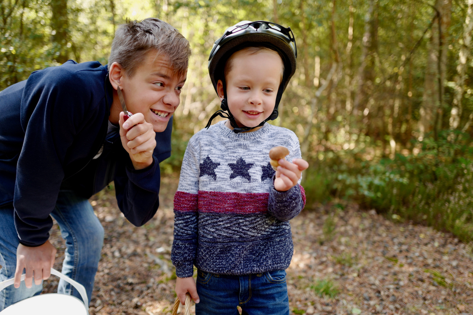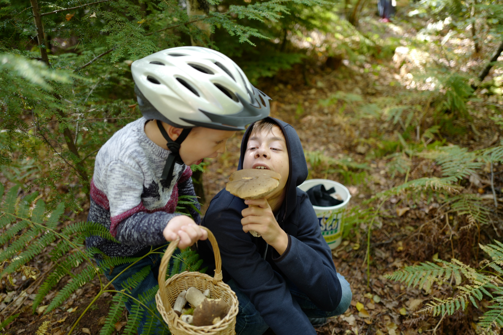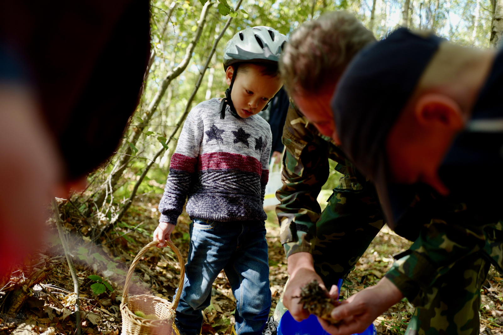 Каждый сентябрь с разной результативностью мы ходим за грибами. В этот раз Марк посещал это мероприятие не в коляске, не попутчиком, а полноценным грибником.