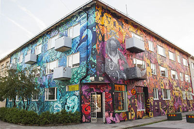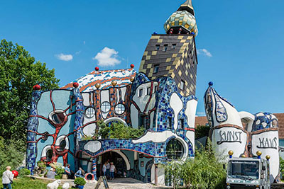 Стены домов были украшены затейливыми узорами, а наверху под крышами были большие картины, нарисованные яркими, разноцветными красками