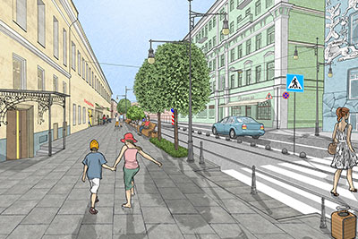 Нужно сказать, что улицы в Солнечном городе были гораздо шире, чем в других коротышечьих городах, причём особенно широкие были тротуары. В каждом доме имелась столовая. Столы стояли не только внутри столовых, но и снаружи, на тротуарах.
