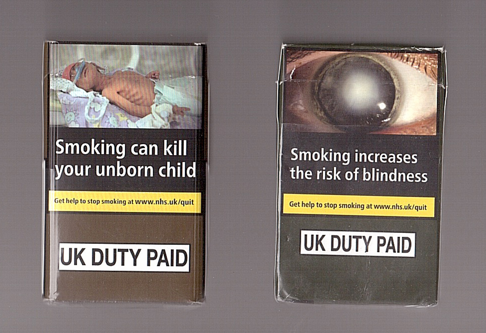 В мае 2017 по мусору на улицах Великобритании стало заметно, что вступил в силу новый закон. Сигаретные пачки поменялись в дизайне и стали такими, как на картинке выше. C обратной стороны, кстати, не лучше.