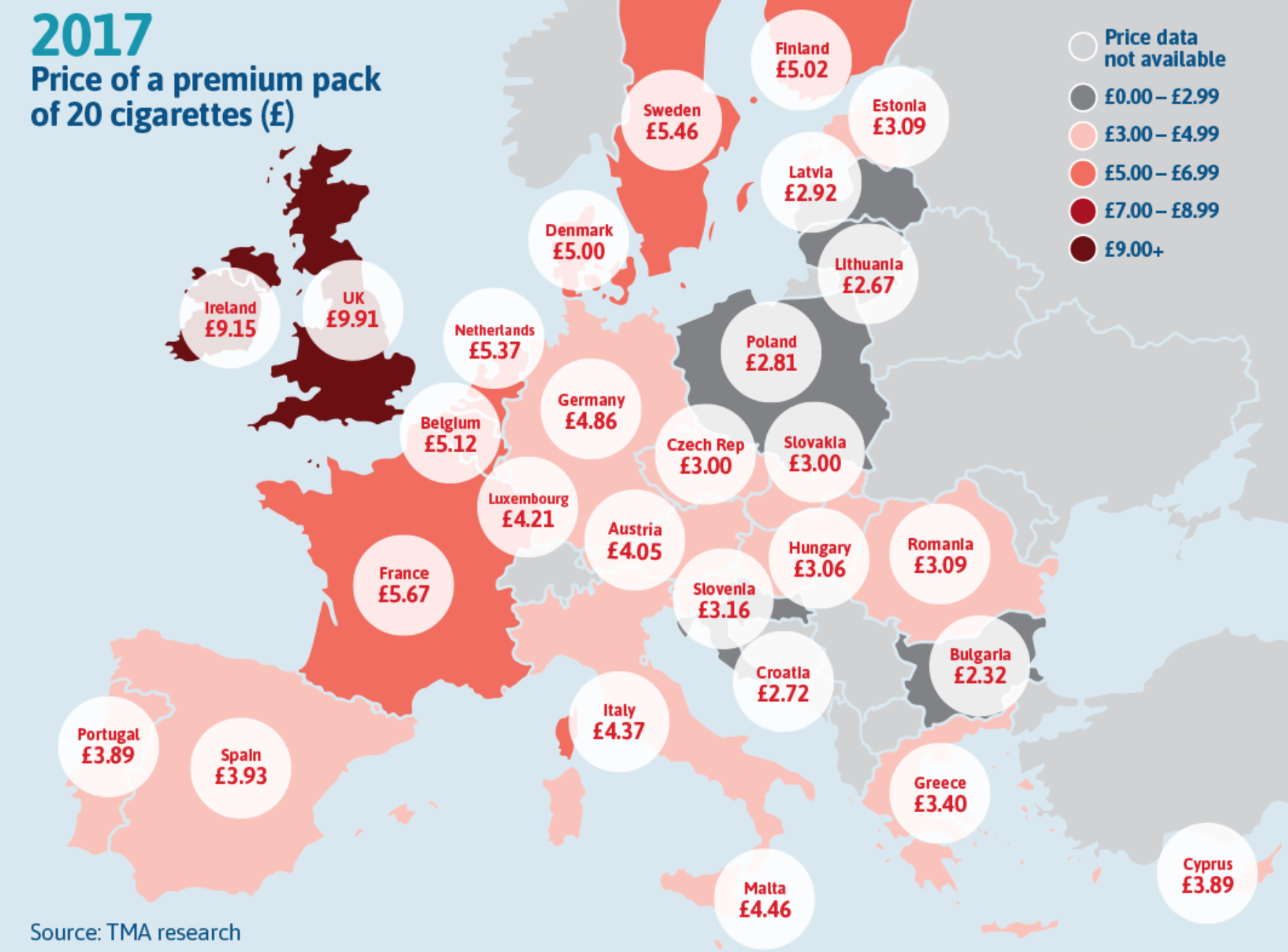 Все эти меры добавляются к главному и самому любимому методу регулирования англичан — цене. Пачка премиум-бренда стоит примерно 350 грн. В Великобритании самые дорогие сигареты в Европе.