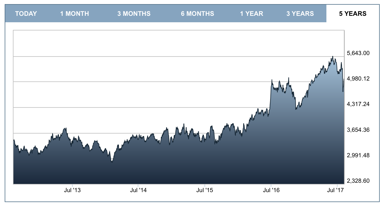 Вдумчивый читатель может подумать, что такие суровые законы больно бьют по табачным компаниям. Так оно и есть, но им хоть бы что. Вот так выглядят последние 5 лет British American Tobacco на Лондонской бирже.