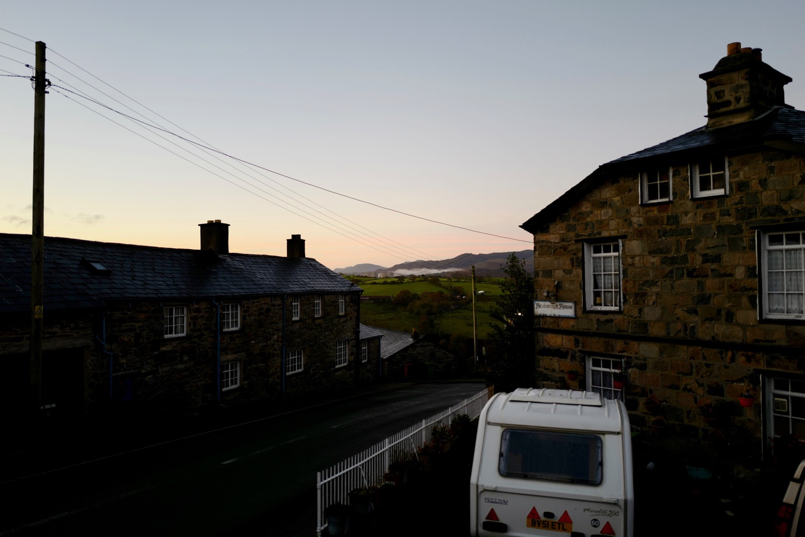 Заночевали мы в пабе в деревне Ffestiniog. Там даже магазина не было, зато утром был красивый туман.