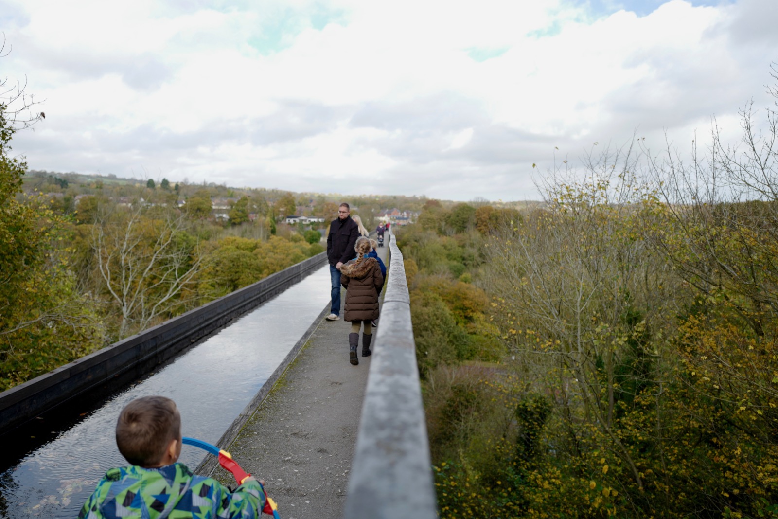 Все это называется акведук, по нему плавают кораблики. Построили его во времена промышленной революции чтобы возить уголь.